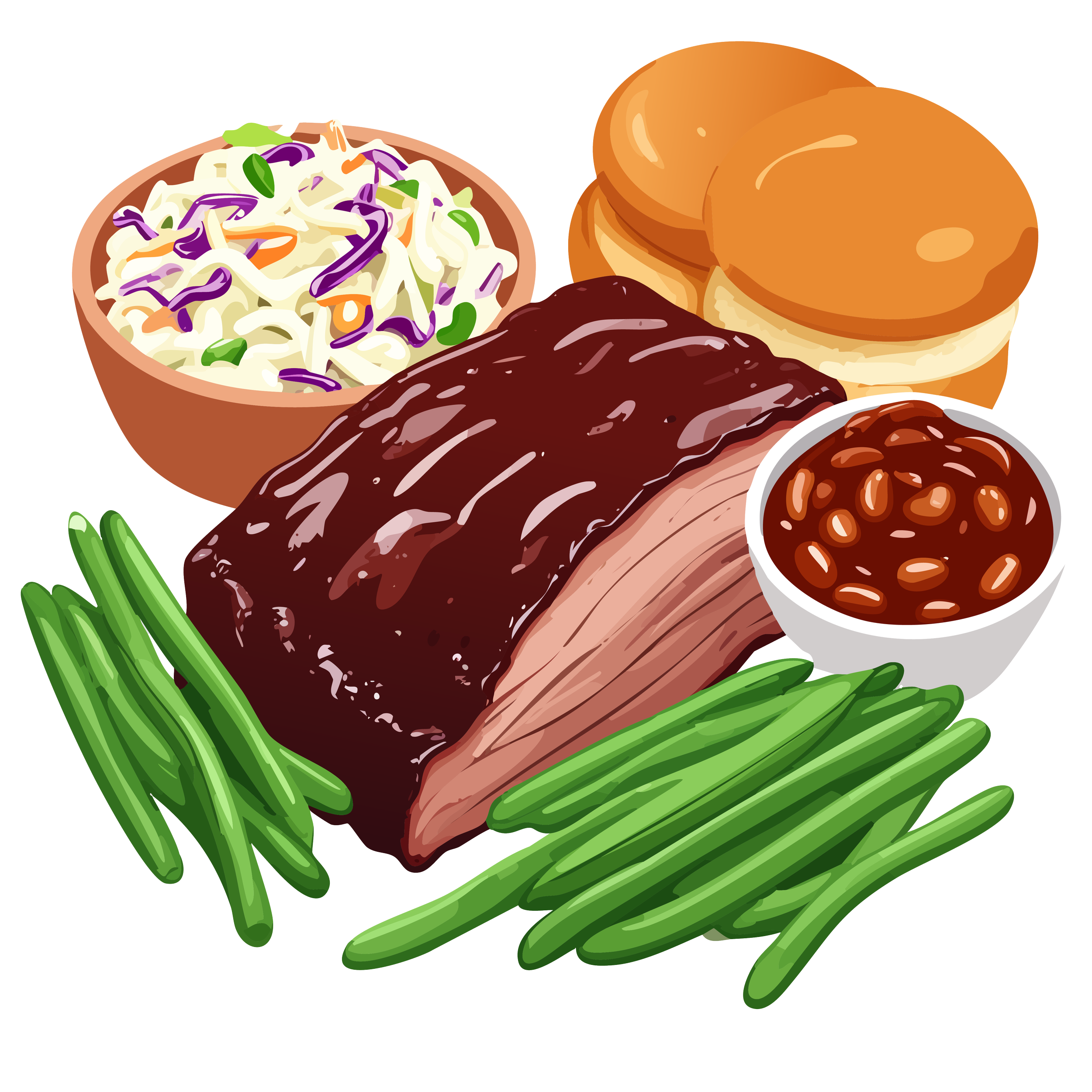 Our buffet-style Southern spread features a crisp wedge salad, BBQ brisket, slow-roasted pulled pork, molasses baked beans, creamy coleslaw, slider buns, Southern-style green beans, and your choice of double chocolate cake or lemon twist cake for dessert. Coffee, tea, and water are included, and a cash bar will be available for additional drink purchases.